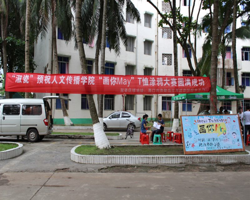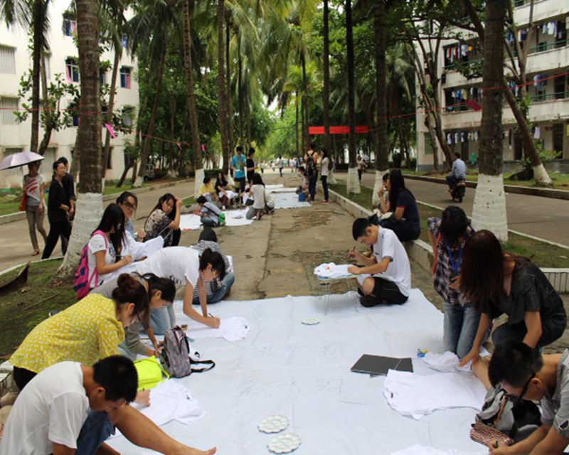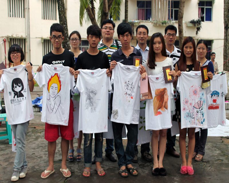 5月5日下午2点30分,由人文传播学院主办的以“画你MAY”为主题的T恤设计大赛在校椰林小道成功举办。人文传播学院团委学工办公衍峰老师、王森森老师、熊文军老师、王俊延老师、陈坤峰老师、以及院学生会主席韩啓雄均参加本次活动。 活动还未开始,就有许多同学提前到达,进行相关的活动报名,生怕错过本次大赛的机会。两点半活动准时开始,在工作人员清点参赛人数后,参赛人群每五人一组分配到不同地点设计自己的DIY作品。不久之后,大雨突然袭来,不过突如其来的大雨丝毫也没有打消参赛者的热情。不时有同学冒雨前来参加现场报名,雨中涂鸦。天公作美,3点30分左右,天空放晴,T恤设计大赛继续开始。参赛者纷纷在椰林小路上继续自己的创作。截止到5点30分活动结束,共有来自6个学院的约50名参赛选手在规定时间上交作品,经过几位老师和参看同学的集中投票,分别产生了本次涂鸦大赛的一二三等奖,学院团委学工办的几位老师分别为获奖选手颁奖,本次T恤设计大赛取得圆满成功。 本次T恤DIY设计大赛增强了lol下注