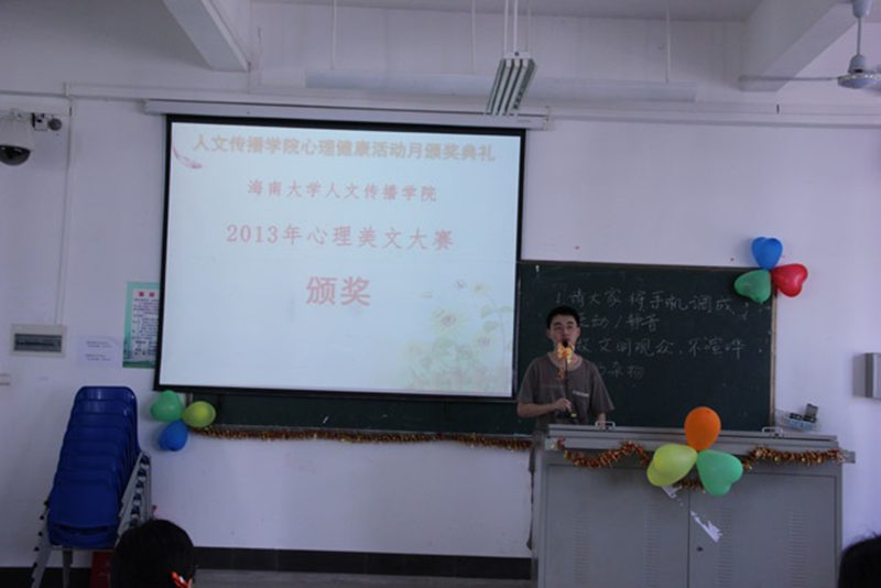 2013年5月19日上午9时,海南大学人文传播学院2013年5•25心理健康活动月颁奖典礼在4教105室正式拉开帷幕。lol下注