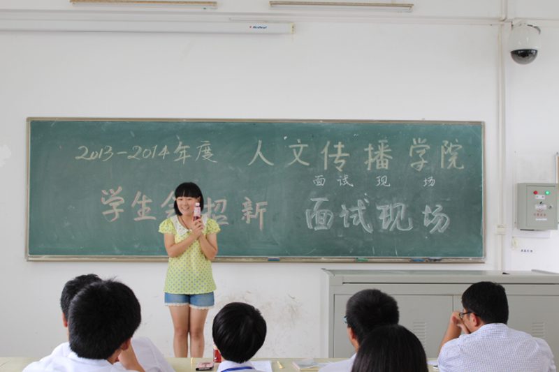 9月17号13:00,人文传播学院团委学生会2013-2014年招新面试拉开帷幕。团委面试于3-501举行,学生会面试于3-503举行。学工办公衍峰老师、熊文军老师、王俊延老师到面试现场进行指导。 本次面试的同学经过了团学各部门部长的精心挑选,整场面试进行的有条不紊。中午12:30,团学各部门部长到面试教室进行准备,主席团成员布置了面试的相关细节工作,并安排了部门之间的面试顺序、面试同学的面试时间等。下午13:00,面试正式开始。在面试进行过程中,同学们积极向老师、部长们展现自己的优点,介绍自身的经历。同时,老师们也针对同学们的个人情况进行了提问,比如让学习了书法的同学现场展现自己的书法功底。各部门的部长也就部门的日常工作以及面试同学的表现进行了提问,面试同学们的表现普遍较好。晚上19:00左右,面试正式结束。 通过此次面试,团学各部门部长对2013级面试同学有了一个较为全面的认识,同时,根据同学们的现场表现,第二轮团学招新面试也已在21号结束,希望报名团学的2013级新生能够在下一轮的面试中更好的展现自己,为团学大家庭注入新的力量。