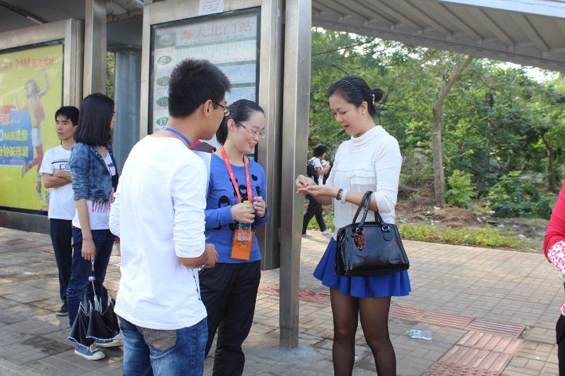 11月23日8:30至17:30,海南大学人文传播学院团委社会实践部组织志愿者在海南大学周边的公交车站开展“零钱兑换,便民出行”的志愿活动。意在减少以往乘客乘车缺少零钱的困境,并且给志愿者一个锻炼的机会,去主动的与人沟通,把助人为乐的精神传递出去。 上午8:00,志愿者们在第一田径场统一集合,随后分成四组分别前往三个活动地点,即海南大学北门、南门以及东门外的公交车站。到达各个服务地点后首先进行悬挂学院院旗、张贴宣传海报等一系列宣传活动,让每一位乘客都了解志愿者们的活动。紧接着给志愿者分发一元零钱,准备就绪后开始便民服务。活动中,志愿者们积极热情,不但为缺少零钱的乘车市民兑换一元零钱,还为问路的市民指路,为乘客们提供了极大的便利。活动持续了一天,直到下午5:30结束。 通过这次活动,志愿者们用自己无私的付出,为市民们提供便利。希望他们能将这助人为乐精神的火种,传递给更广大的人群,让这文明之火照亮更多人的心灵!