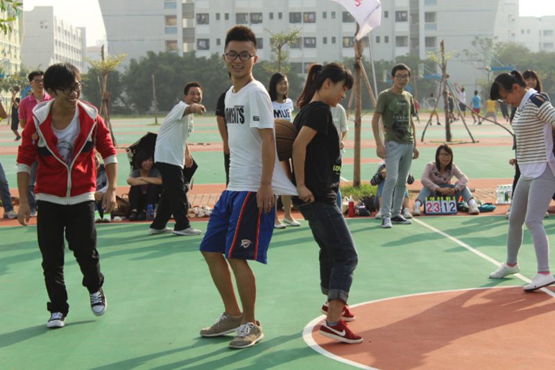 在校第二篮球场成功举办了团学干部素质拓展活动。学工办熊文军老师出席本次活动。 活动开始,熊文军老师进行了简单的讲话。他指出,通过几次团学活动的检阅,新一届的团学干部,特别是13级的干事们工作认真负责,值得表扬;但团学不同部门之间交流较少,希望可以通过此次素质拓展活动,促进团学内部的交流,让每位成员都融入到团学大家庭中。 随后,由学生会体育部陈南均部长介绍活动内容。本次活动共分为两大部分:篮球赛和趣味篮球活动。其中,篮球赛由三节男子篮球赛和一节女子篮球赛组成。趣味篮球活动由“夹球蹦蹦跳”、“背对背夾球”、“球穿人墙”和“蒙眼砍球”等四个小游戏。紧接着,团学以部门为单位分为A、B两组开始了紧张而有趣的比赛。篮球赛中,球员奋力拼搏,啦啦队员们则努力加油呐威。趣味篮球活动中,团学干事们积极参与,团结一致。现场气氛轻松、活泼而又团结、有序。最后,团学干事进行合影留念。