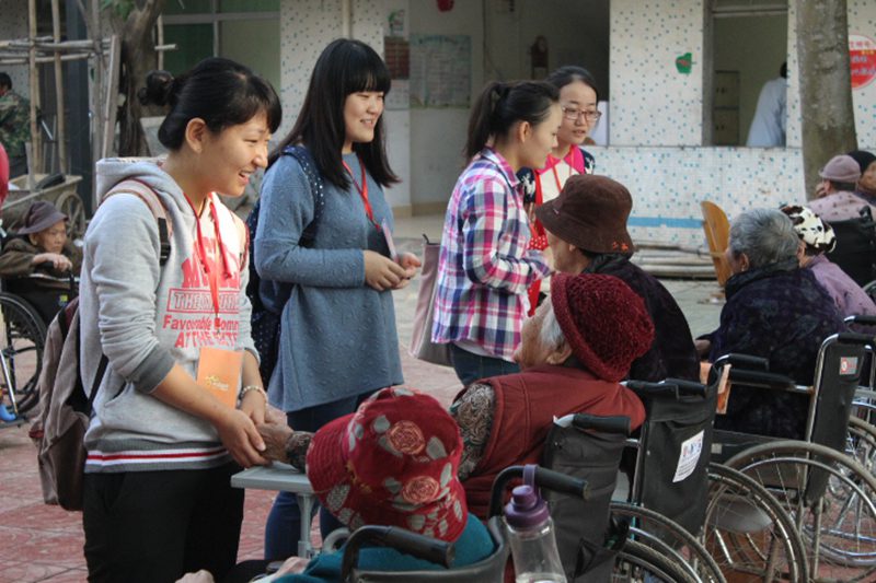 团委社会实践部的组织带领下进行了慰问。 志愿者们一进入老年公寓的大门就得到了老年公寓负责人的热烈欢迎。负责人先是热情地为大家介绍老年公寓的情况,同时向大家宣读了义工守则,最后还向大家交代了一些注意事项。在老年公寓负责人的建议下,志愿者们被分为四组,前三组每组负责一个楼层开展慰问活动,第四组帮助老年公寓义工分洗衣物。志愿者们分工合作,为老人们派发礼品、搞卫生,以及陪老人聊天、捶背,志愿者们的关爱让老人们那苍白的脸露出久违的笑容。在志愿者们默契的配合下,本次活动举办得有声有色。活动最后,志愿者们一起为老人们表演了文艺节目,赢得了在场老人的一致赞扬。表演结束后,志愿者们依依不舍的跟老人们握手告别。和这么多老人近距离接触的我们,尽自己最大的努力把快乐与温暖送给了他们,老人们的微笑是对我们最大的肯定。 经过两次的慰问活动,志愿者们能从中获得很多感悟,也将把“奉献、友爱、互助、进步”的志愿者精神在今后的工作中继续传承!