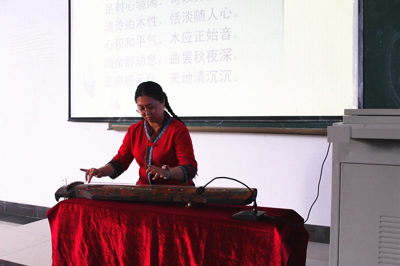 2013年12月10日下午3:00,人文传播学院“和静清远——中国古琴文化漫谈”讲座在4-108顺利举行,本次讲座由黄慧老师担任主讲嘉宾,学工办公衍峰老师与2013级中文、国际汉语教育专业的同学共同聆听了讲座。 讲座开始前,公衍峰老师首先发表讲话,简要介绍了黄慧女士的学业背景并对黄慧女士的到来表示热烈欢迎,同时表达了自己对同学们的希望,希望同学们能够通过此次讲座仔细的了解中国的古典文化。接着,黄慧老师开始了古琴的讲解。在精彩的讲座中,黄慧老师为同学们讲述了古琴的由来、名称以及它的历史传说。随后,黄慧老师还讲解了古琴的琴种、演奏的技巧以及记曲的方法等。最后,黄慧老师还为同学们演奏了几首十分动听的古琴乐曲,同学们都被这清净悠远的乐曲所吸引,并为黄慧女士高超的技巧而倾倒。 伴随着热烈的掌声,古琴讲座也落下了帷幕。相信通过此次讲座同学们也一定收获良多,希望同学们能够努力积极地去了解中国的传统文化,并使之发扬光大。
