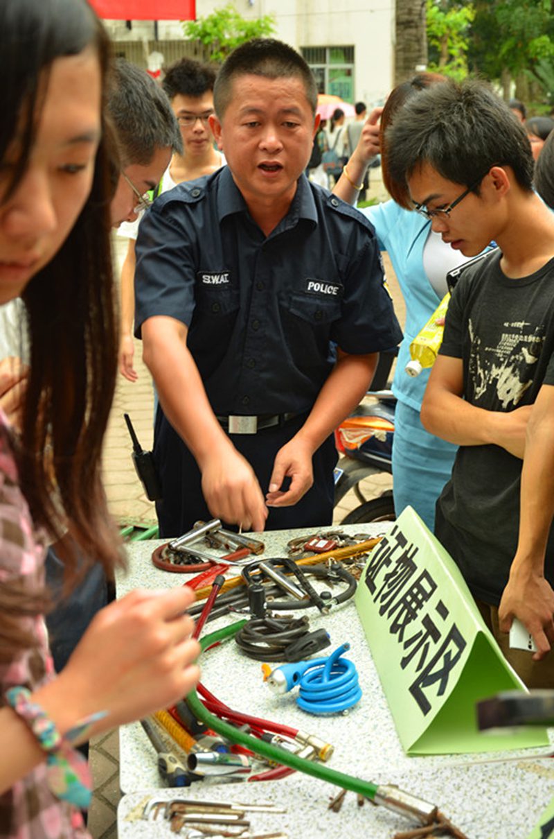 4月10日上午11时40分,人文传播学院安全教育活动月在海南大学二食堂前开幕,开展防火防盗、消防演习主题教育活动。活动邀请到海南大学保卫处黄海宁处长,人文传播学院学工办公衍峰老师,王森森老师,熊文军老师和王俊延老师出席了本次活动。 黄海宁处长和人文学工办主任公衍峰老师分别为活动致辞,两位老师分别从校园生活和宿舍生活两个角度强调了安全教育活动的重要性,告诫大家在日常生活注重安全防范,防火,防电,防盗等等。在之后消防的演习中,黄处长为大家演示了灭火器的正确使用方法,还请上四位在场的同学参加灭火演习。在主题教育活动中,黄处长为大家讲述了许多关于防盗的知识,在场同学受益匪浅。 活动吸引了许多过路的同学围观,大家纷纷表示这次活动教给了自己许多安全知识,提高了自己的安全防范意识。安全重于泰山,我们只有懂得安全知识,注重安全,积极地加以防范,才会及时发现和消除安全隐患,才能构建美丽和谐的海大校园。围绕安全教育的主题,学院后续将会通过学院微信平台“人文青年”和官方微博平台开展一些列的网络安全、饮食安全、出行安全……等主题教育活动。