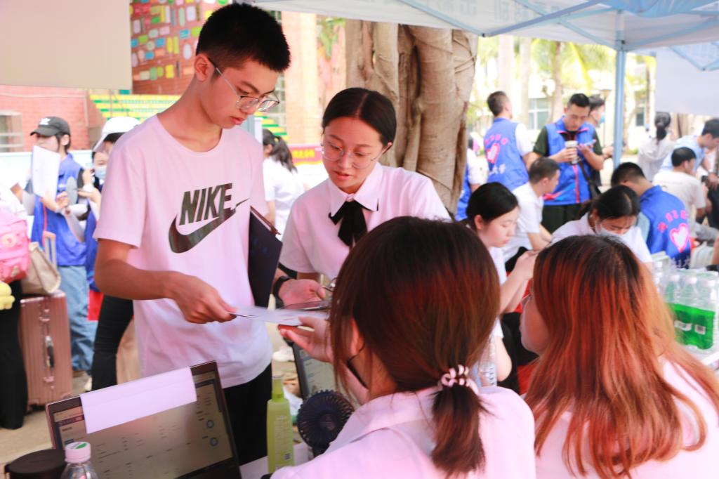 为响应国家疫情防控部署、便利奔波一路的新生报到入学,2020年9月11日上午,海南大学人文传播学院2020级新生入学接待工作在海南大学城西校区全面展开。学院党委书记邱华祥、党委副书记罗邻球到现场进行指导工作,学院全体辅导员全程参与,学校党委常委、副校长梁谋到场视察慰问。