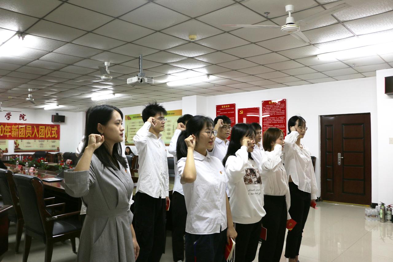 仪式开始,全体人员起立、奏唱国歌。接着,由主持人宣读新团员名单,团委书记公衍峰为新团员颁发团章,辅导员李洁老师为新团员佩戴团徽。