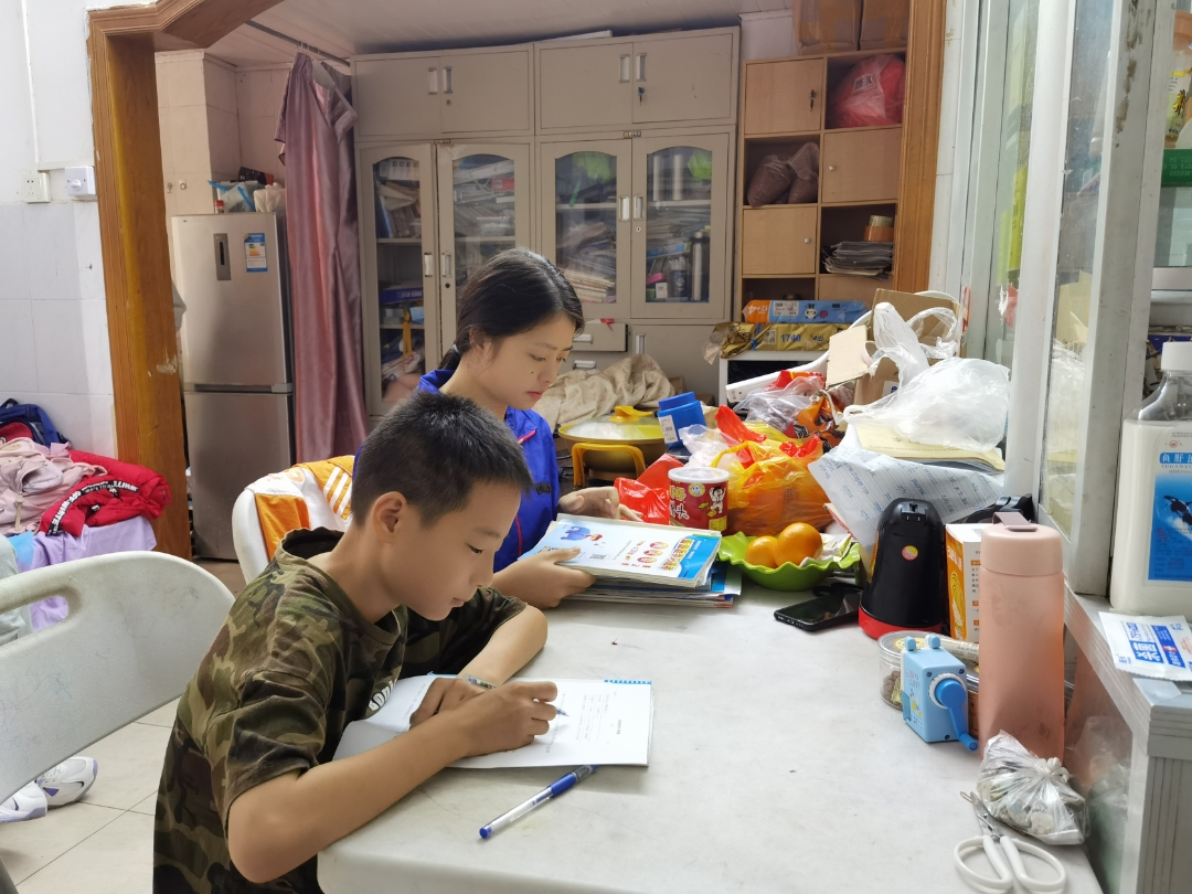 用爱心教授知识,用善行传递薪火。在活动过程中,16名志愿者两人一组,分别前往不同家庭进行家教活动。孩子们早已端坐于书桌之前,准备好书籍与问题,等待着志愿者。在家教过程中,志愿者首先询问孩子们最近的学习进度以及面临的学习问题,了解相关情况后就依据孩子们的学习进度及能力为孩子们制定合适的学习计划,随后仔细地为孩子们解疑答惑。如果孩子们没有理解,他们也毫不气馁,仍旧耐心地为孩子们讲解。无论是语文、历史,或是生物、数学;无论是古、今,或是中、外,只要志愿者有所了解,他们就毫无保留,只为了将善良与知识的薪火传递下去。