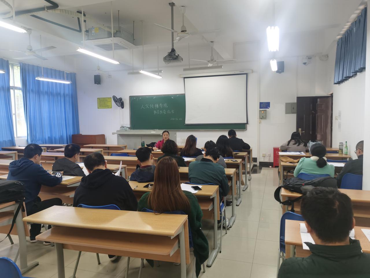为促进班级建设,维持良好的教学秩序,12月22日下午,人文传播学院在5号教学楼107教室召开班主任交流会。党委副书记罗邻球、学工办老师李润东、李洁、宋鸽以及2017—2020级全体班主任出席本次会议。