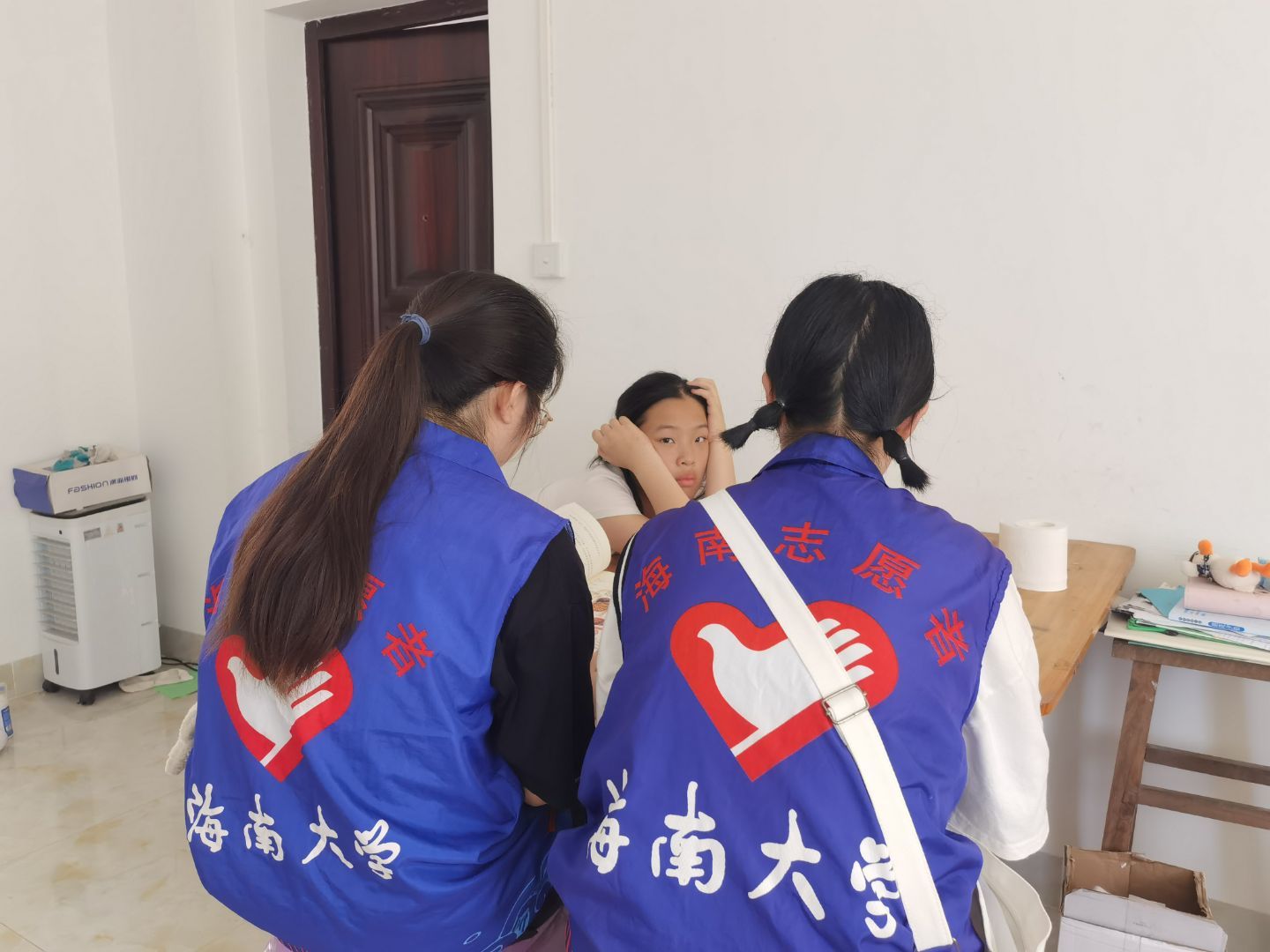 2021年4月4日,在海南大学人文传播学院青年志愿者协会带队人员的带领下,六名志愿者从海南大学海甸校区出发,在万福社区集合,开展本学期第一期“博古而通今,挥笔在指尖”万福社区义务家教活动。