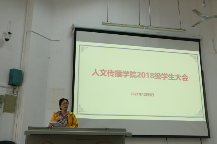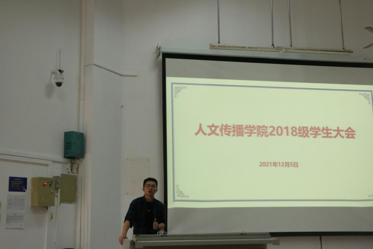 12月5日下午3时,人文传播学院2018级学生大会在海甸校教学楼2-108举行,人文传播学院党委副书记罗邻球、副院长李彩霞、教务办老师陈传君出席本次大会,会议由2018级辅导员李润东老师主持。