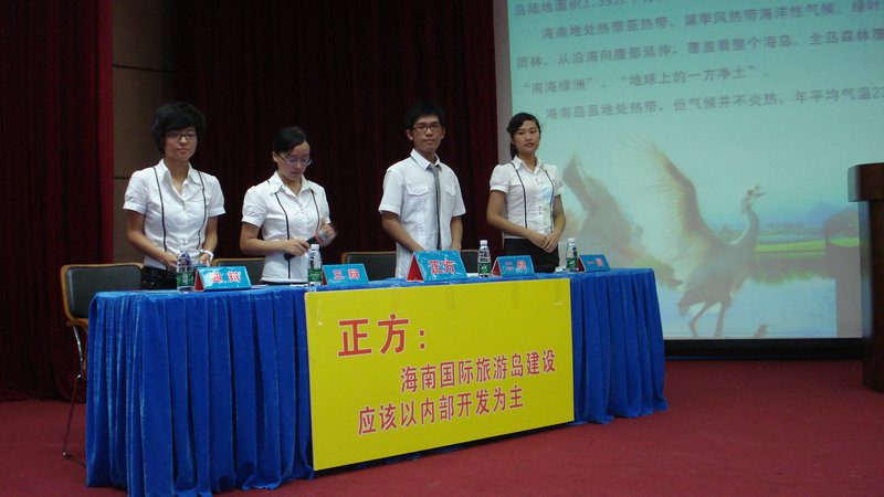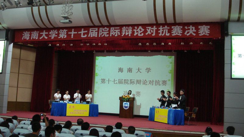 4月18日下午4时,海南大学第十七届院际辩论赛决赛在学校行政楼2楼报告厅正式上演。人文传播学院文韬武略辩论队是比赛的正方,辩题为“海南国际旅游岛建设应以内部开发为主”。本次比赛的评委由健坤集团副总经理郭鑫先生、海南医学院团委符琬聆书记、海南大学学报主编许文深老师、艺术学院党委陈泰义副书记、海南省演讲协会副会长李晓东老师担任。人文传播学院党委孙晓媛副书记、学工办主任苏文魁老师、学院团委书记谢庚全老师、学工办公衍峰老师等也来到现场为lol下注