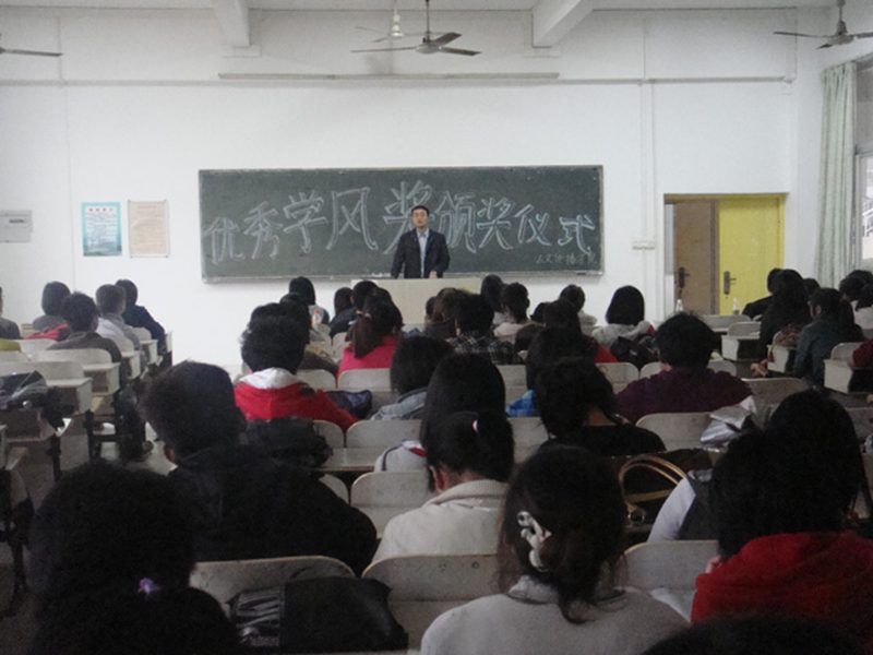 人文传播学院“优秀学风奖”颁奖仪式于3月8日下午5点在3教107隆重举行,学工办公衍峰老师、王森森老师以及全体团学干部参加了此次颁奖仪式。 “优秀学风奖”的设立旨在表彰全体团委、学生会干部中学习优异者,并通过获奖同学的带动作用,在团委、学生会以及全院形成良好的学习风气;共设立一等奖1名、二等奖2名、三等奖3名、四级单项奖1名、六级单项奖1名、体育单项奖1名。 本次颁奖仪式由秘书处主办,主持人首先介绍了团学干部参评的情况,共有52名干部申报参评材料,其中绩点在2.8以上的43名,占参评干部的82.6%;随后,公衍峰老师对此奖项设立的背景和目的做了详细的介绍并为获得一等、二等、三等奖的同学颁发了证书和奖品;王森森老师为单项奖获得者颁发了证书和奖品,并表达了对获奖者的祝贺和对全体团学干部的殷切希望。最后,获奖代表向与会的团学干部分享了自己的学习经验和体会,并进行了自由交流。 这次颁奖仪式不仅对成绩优秀的团学干部进行了表彰,激发了同学们的学习热情,促进了团学干部的全面发展,而且对于全学院的优秀学风倡导也起到了十分积极的作用。