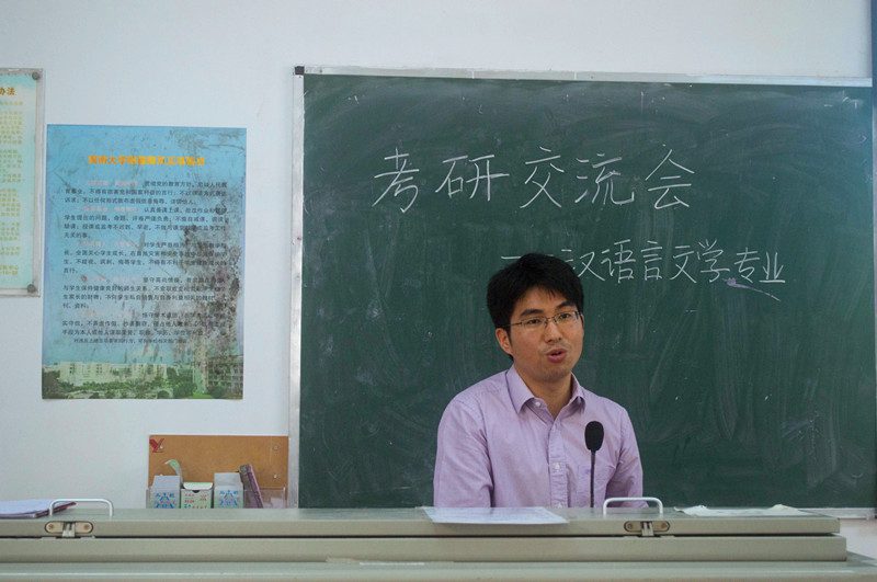 汉语言文学、汉语国际教育、戏剧影视文学、广告学专业考研指导交流活动分别于4月9日、10日、17日成功举办,中文系主任张硕果老师、汉语国际教育系主任马荣江老师、戏剧影视文学系主任鞠斐老师、新闻与传播学系主任何晶娇老师分别主持了活动,2011级考研、保研成功的同学也在活动中与学弟学妹们分享了自己的经验。 活动开展过程中,各系主任询问了同学们的考研准备情况,并介绍了学术硕士与专业硕士的不同培养方向,同时根据同学们的实际情况,就如何选择院校和专业的问题,帮助大家进行了具体、全面、详细的分析。老师们多次提到,同学们在报考时要注意各专业、各院校的本科生数量和研究生数量之间的关系,要根据自己的学习兴趣选择适合自己的专业,跨专业考研的同学需要更加充分的准备等等。随后,2011级考研和保研成功的同学分享了自己的经验,更加贴近同学们的实际,并对一些具体问题给同学们做了解答,比如:如何合理分配自己复习英语、政治和专业课的时间,如何安排复习的时间段,如何协调上课与考研复习,如何能够抢到教室的座位等等。活动最后,老师和学长学姐们还现场对同学们的问题进行解答,包括考研试题的构成及调剂问题等,现场互动氛围浓厚。活动在欢快的氛围中结束,同学们纷纷表示受益匪浅,燃起了自己考研的斗志,会尽快投入到考研的准备工作中去。