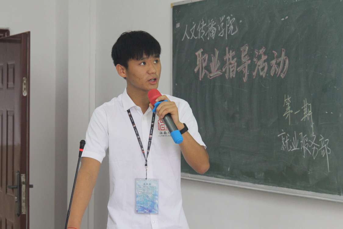 此次职业指导活动旨在帮助同学们树立生涯规划意识,提高同学们对职业生涯的规划能力,希望同学们能够更加了解自己,提高自身素养,在未来职业发展的道路上越走越好。 传媒部记者 文/唐霖聆
