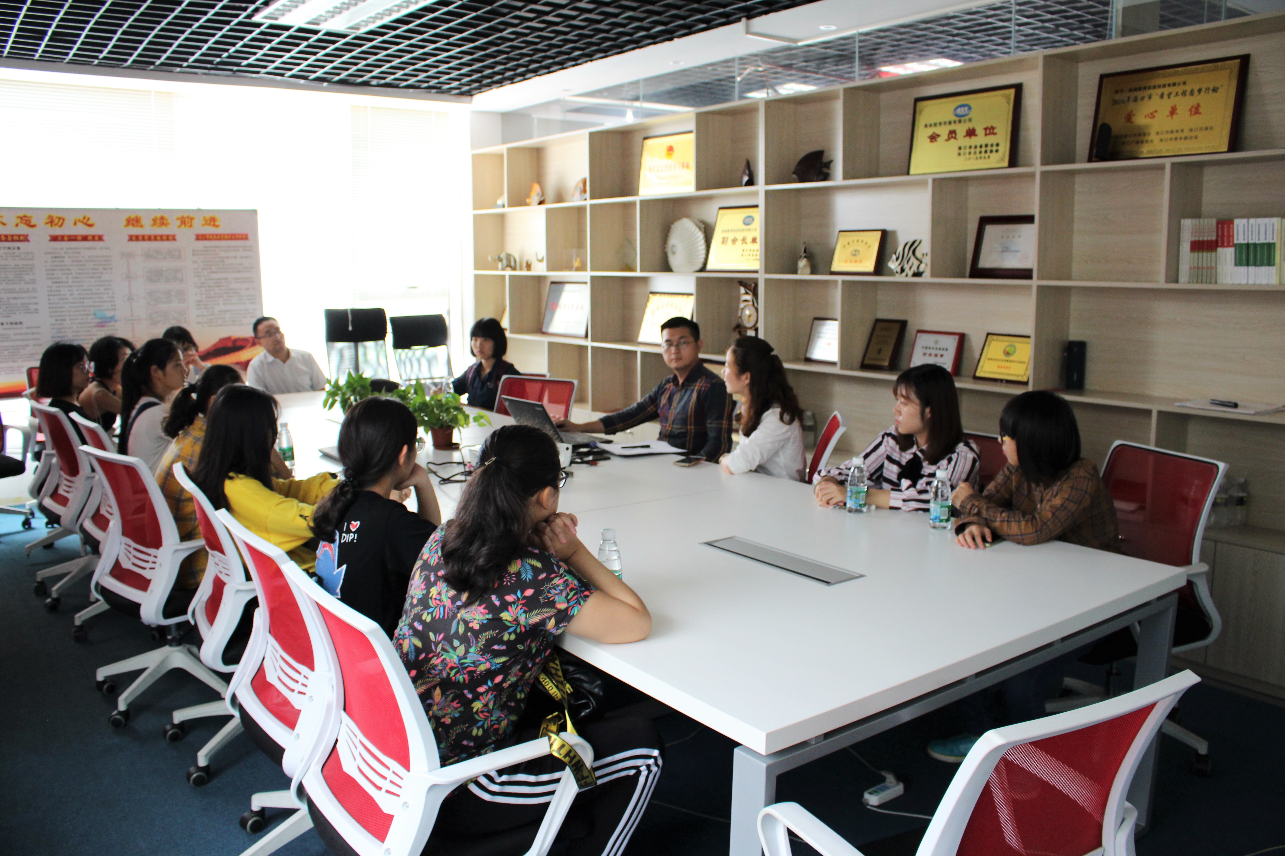 师生表示了热烈欢迎,然后带领同学们大致参观了会展公司的内部结构,详细讲解了各个部门的运营模式以及工作职责等基本情况,让同学们对酷秀集团的发展有了初步了解。