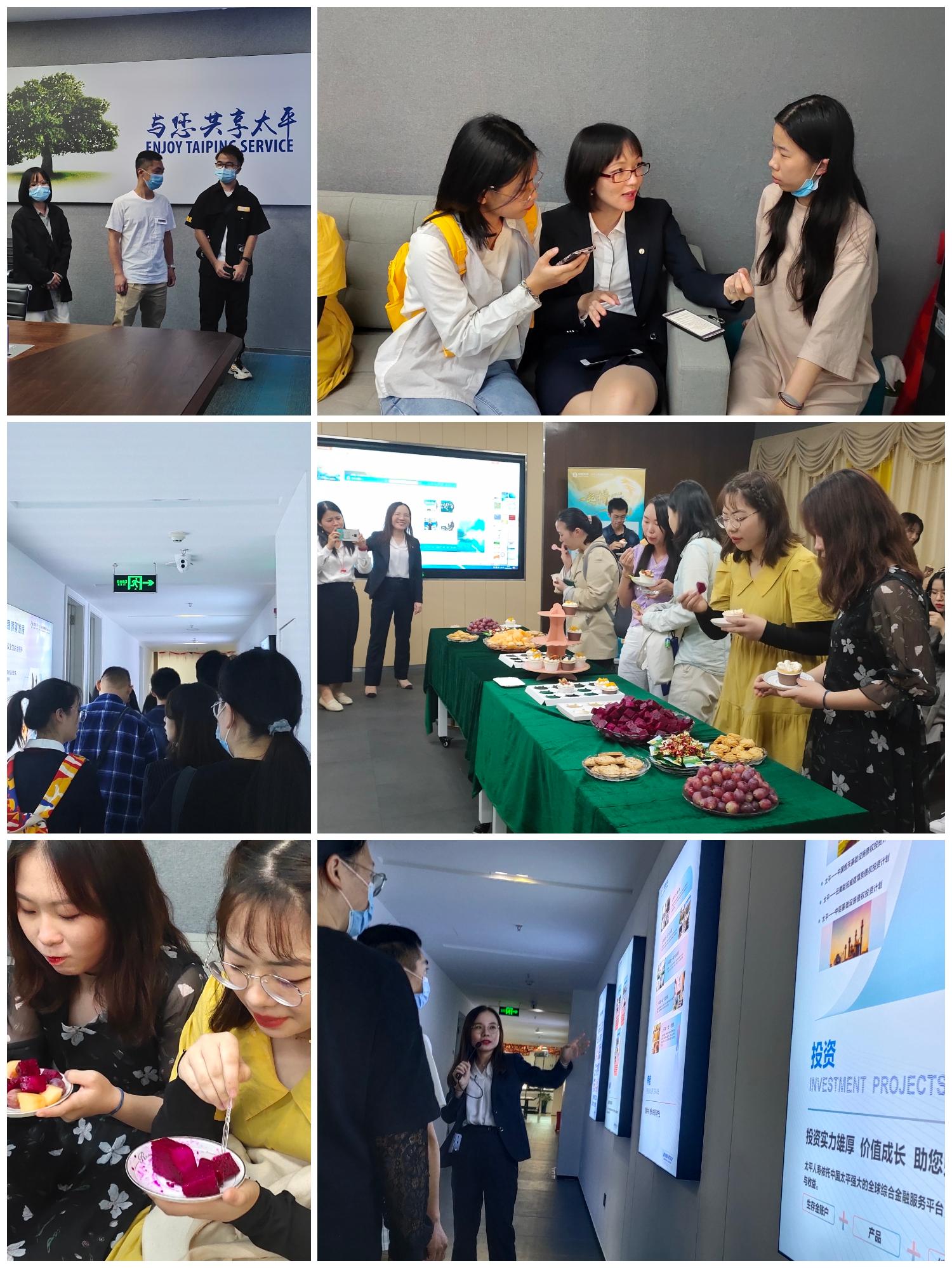 2020年11月13日15:00,人文传播学院生涯发展中心携手太平人寿海南分公司在国兴大道互联网金融大厦A座16层开展“走进企业”活动。在人文传播学院宋鸽老师、李润东老师的支持和带领下,由生涯发展中心生涯探索部成员组织大一到大三17名同学参加了这次别开生面的活动。