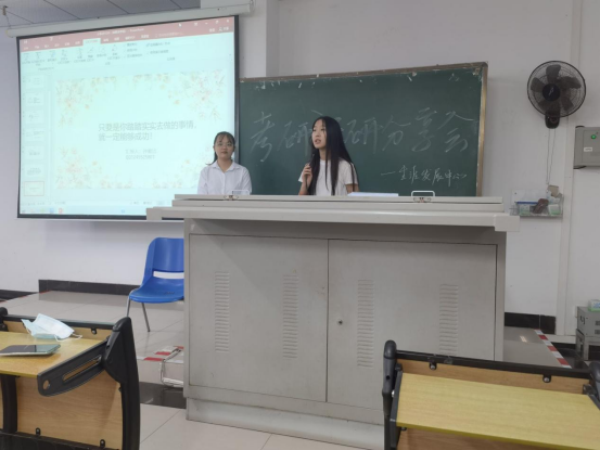 10月31日上午,人文传播学院组织举办的考研保研交流分享会,在海南大学海甸校区第五教学楼101、102教室顺利进行。本次活动分为中文专场和新传戏影专场。