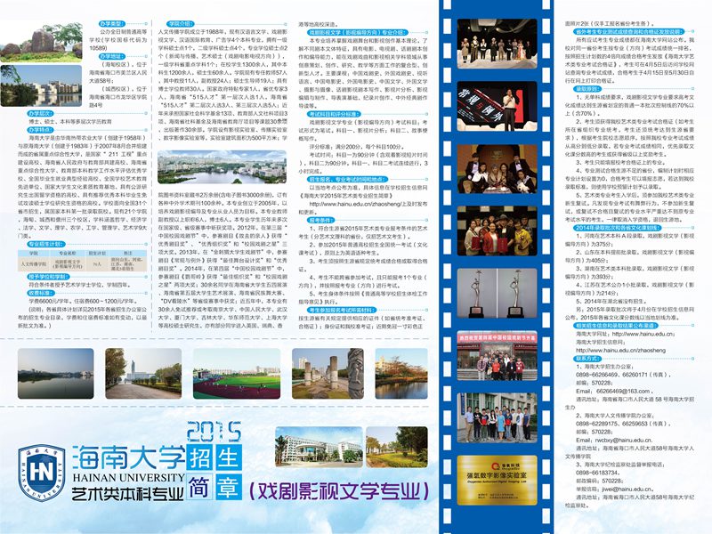 2015年海南大学艺术类本科专业招生简章(戏剧影视文学专业)