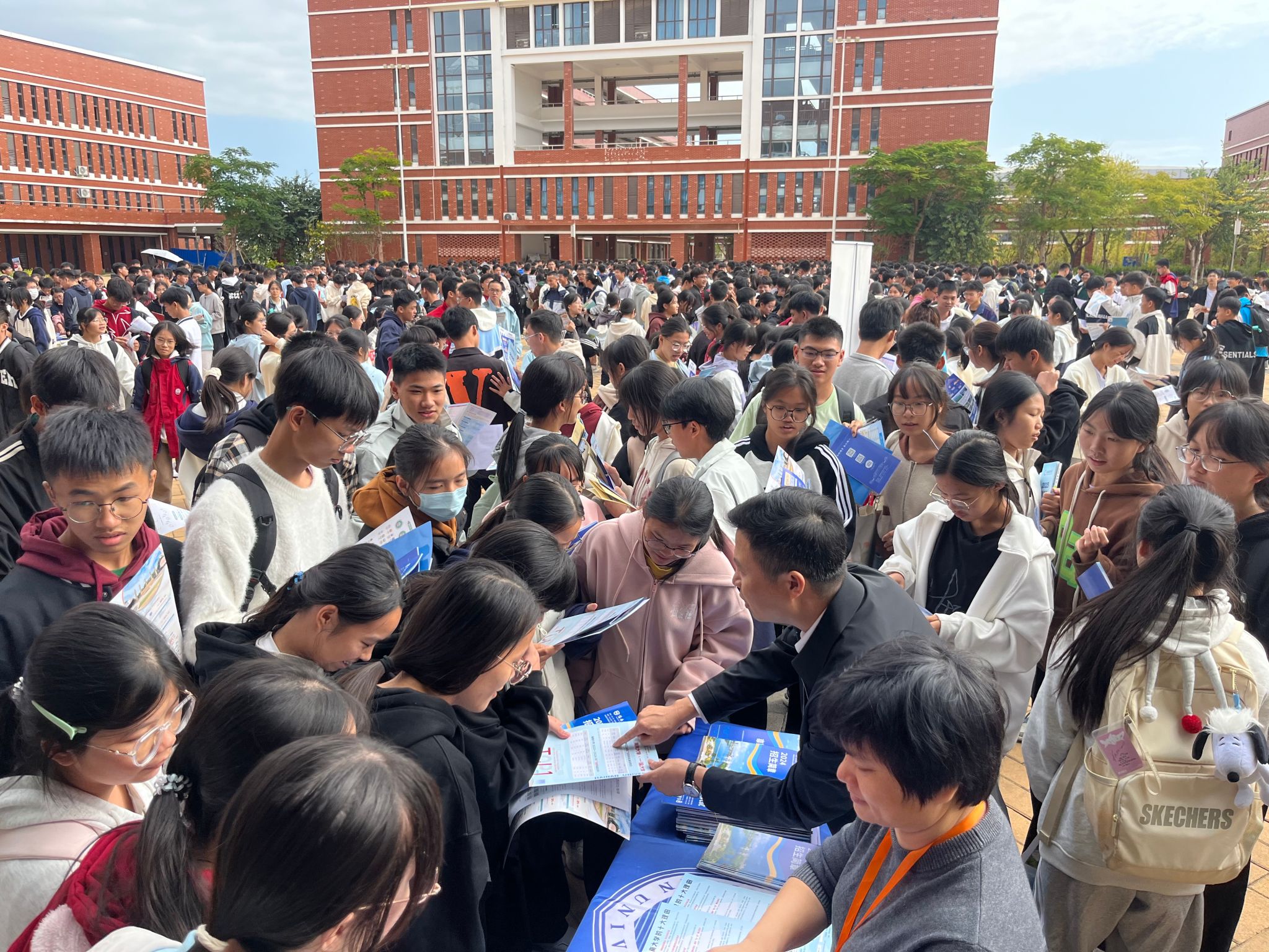 在与高中生面对面咨询环节,海南大学受到同学们的青睐,场面可谓是异常“火爆”,同学们争先恐后领取学校招生简介、明信片等材料,招生宣传组成员对同学们提出的关于招生分数线、招生人数、专业设置、就业方向等问题进行耐心细致的解答,鼓励优秀学子积极报考海南大学。
