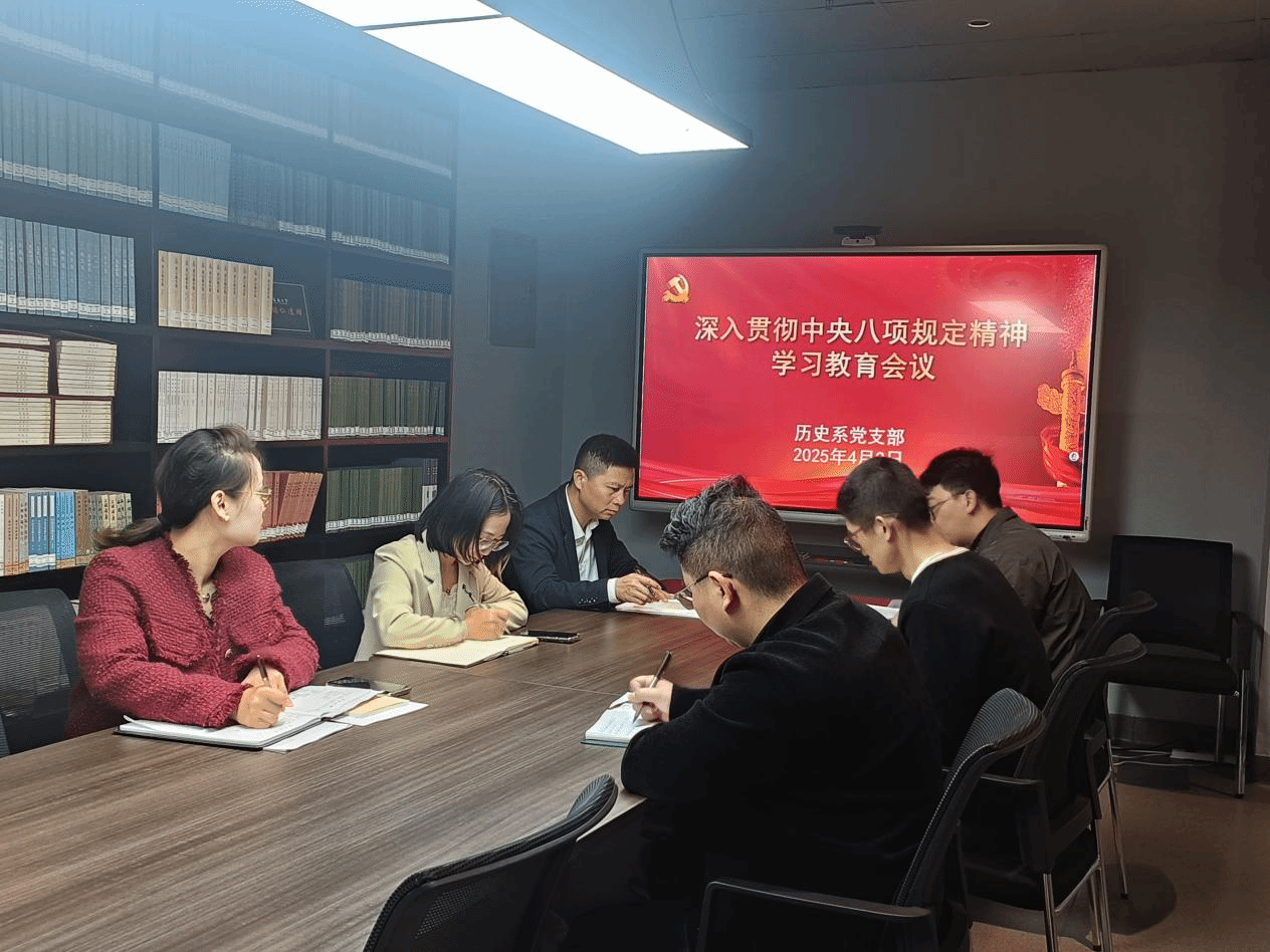 历史系党支部书记管仲乐带领全体党员重点学习了中央八项规定全文及其实施细则精神、习近平总书记在二十届中央纪委四次全会上发表重要讲话、2025年全国两会精神等文件精神,通报了近期中央纪委国家监委通报的违反中央八项规定精神的典型案例。他表示,党员教师要始终坚持问题导向,深刻认识作风问题的顽固性和反复性,自觉抵制“四风”,持续加强师德师风建设,营造风清气正的育人环境。
