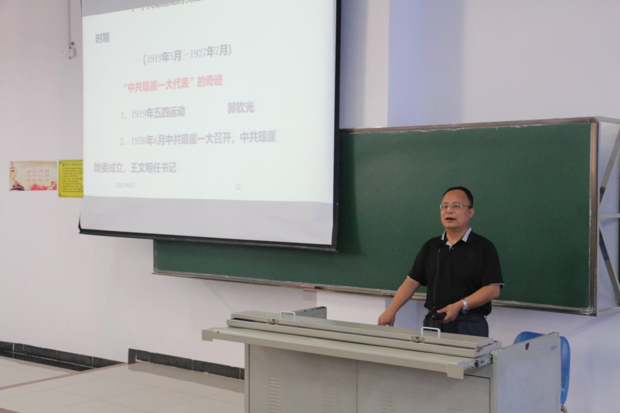 党委组织开展了“党史学习教育先锋课堂”第三讲,邀请海南大学马克思主义学院教授、海南中共党史学会常务理事、海南省习近平新时代中国特色社会主义思想学习研究中心特约研究员王善老师作为主讲嘉宾。此次党课活动由学院党委副书记罗邻球同志主持,学院全体学生党员、发展对象、入党积极参加。