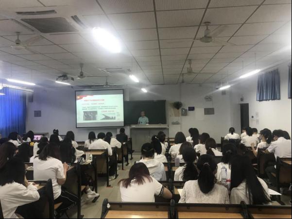 2021年6月27日上午9点半,人文传播学院“党史学习先锋讲堂”第九讲在5教201课室顺利开展。学院党委书记邱华祥以“中国共产党百年伟大贡献”为题,给今年上半年新吸收的预备党员讲了一堂专题党课。