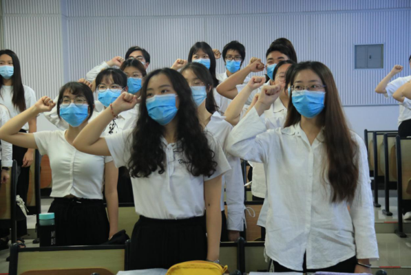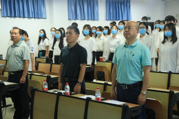 6月27日上午10点,为迎接党的百年华诞,进一步深化党史学习教育,海南大学人文传播学院新党员入党宣誓仪式在5教201课室顺利举行。学院党委书记邱华祥、院长刘复生、特邀党建组织员林少敏出席,近90名新吸收的预备党员参加。仪式由党委副书记罗邻球主持。