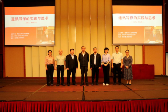 2021年10月27日下午,学院“党史学习先锋讲堂”邀请到新华社原社长、党组书记李从军担任主讲嘉宾,在社科楼二楼报告厅为学院广大党员、师生作题为“通讯写作的实践与思考”专题讲座。原中国摄影家协会主席、分党组书记王瑶,海口市委常委、宣传部部长王忠云;学校党委书记符宣国,党委常委、宣传部部长谭勇,党委常委、统战部部长陈明宝,学院院长刘复生、党委书记邱华祥、副院长石晓岩和李彩霞等出席并聆听了本次讲座。