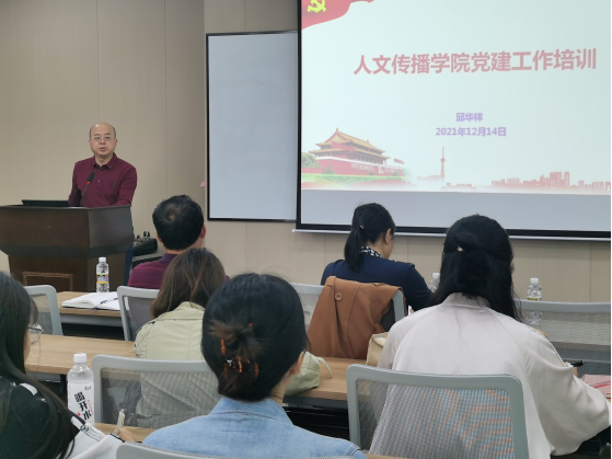 为深入学习宣传贯彻党的十九届六中全会精神,深化拓展党史学习教育,提升支委和学生党建联合会学生骨干的工作能力和业务水平,进一步推进支部规范化和标准化建设,增强党支部的组织力和战斗力,2021年12月14日,海南大学人文传播学院党委在社科楼B623举办了党建工作业务培训,特邀党建组织员林少敏、学院党委书记邱华祥、副书记罗邻球、所属支部全体支委及党建联合会学生骨干参加了培训。