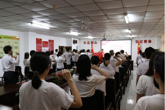 随后,面对庄严的党旗,邱华祥同志带领全体党员重温入党誓词,表达对党的无限忠诚、热爱和听党话、跟党走的坚定之心。
