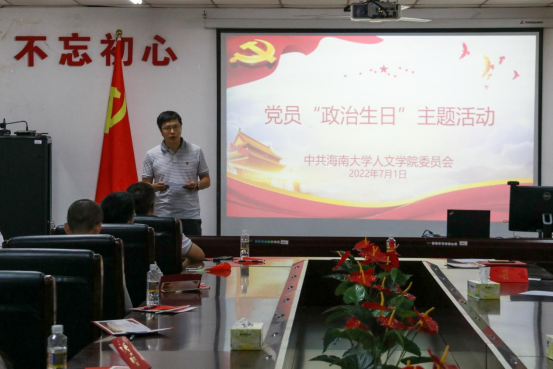 党委在社科楼B719开展庆祝“七一”暨“政治生日”主题党日活动,迎接党的101岁生日,喜迎党的二十大胜利召开,激励广大党员听党话,感恩党,跟党走。学院党委委员、院领导、全体教职工党员等40余人参加了活动。