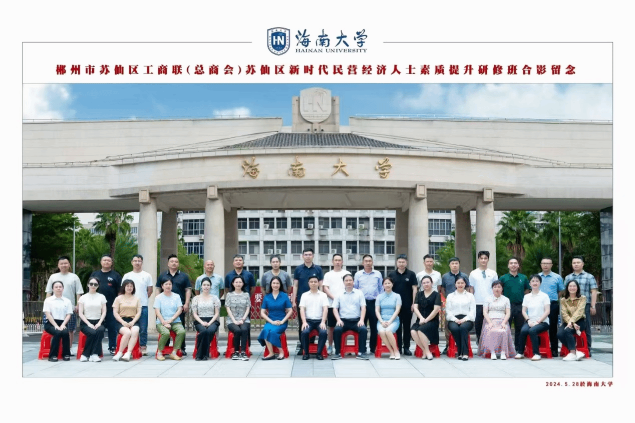 204年5月28日,郴州市苏仙区工商联(总商会)苏仙区新时代民营经济人士素质提升研修班在海南大学开班。