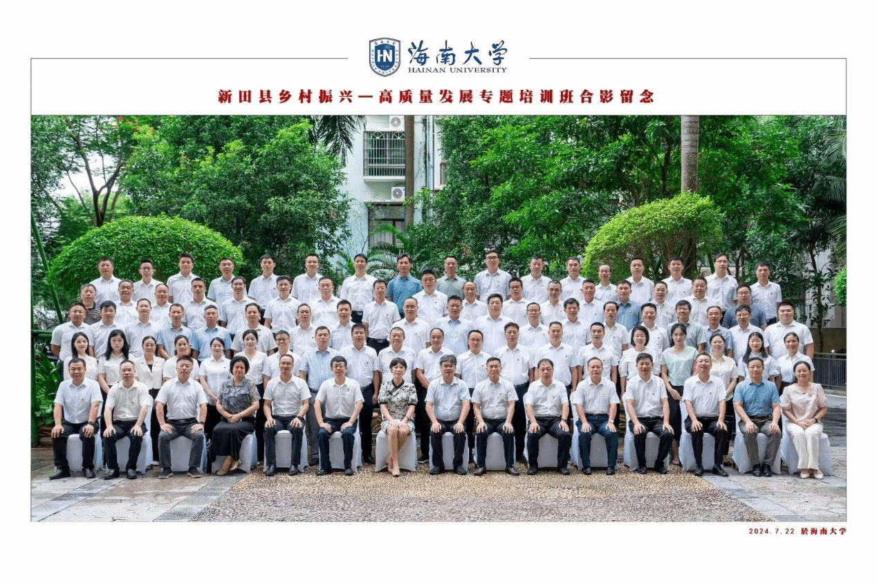 为深入贯彻落实党的二十届三中全会精神,全面提升干部队伍推动高质量发展的能力和水平,2024年7月22日,新田县“乡村振兴——高质量发展专题培训班”在海南大学开班。开班仪式上,海南大学党委常委、副校长邱锡光致辞,向学员介绍海南大学办学基本情况和社会服务情况。县委书记陈雄作开班动员讲话。陈雄指出,本次高质量发展专题培训班,旨在贯彻落实党的二十届三中全会精神,求取高质量发展经验,掌握更多“改革”之法、开启更多“创新”之门,不断提高干部队伍抓发展的能力,更好推进“转作风、提信心、优环境、惠民生、强底气、创一流”工作目标,使干部队伍成为推动经济社会高质量发展的中坚力量。