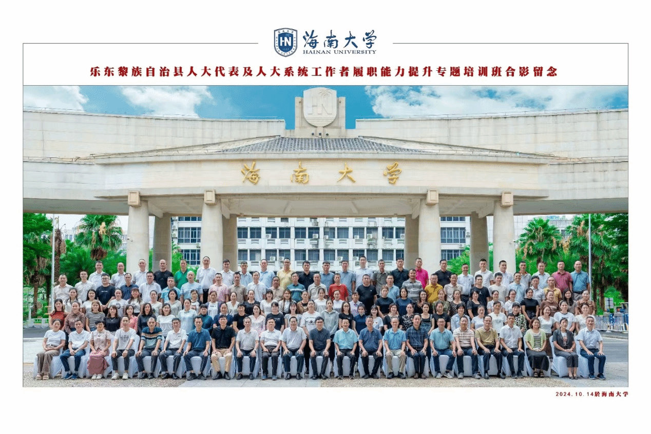 为深入学习贯彻党的二十届三中全会精神和习近平总书记关于坚持和完善人民代表大会制度的重要思想,切实提高我县人大代表的履职能力和工作水平,2024年10月14日,乐东黎族自治县人大代表及人大系统工作者履职能力提升专题培训班在海南大学开班。