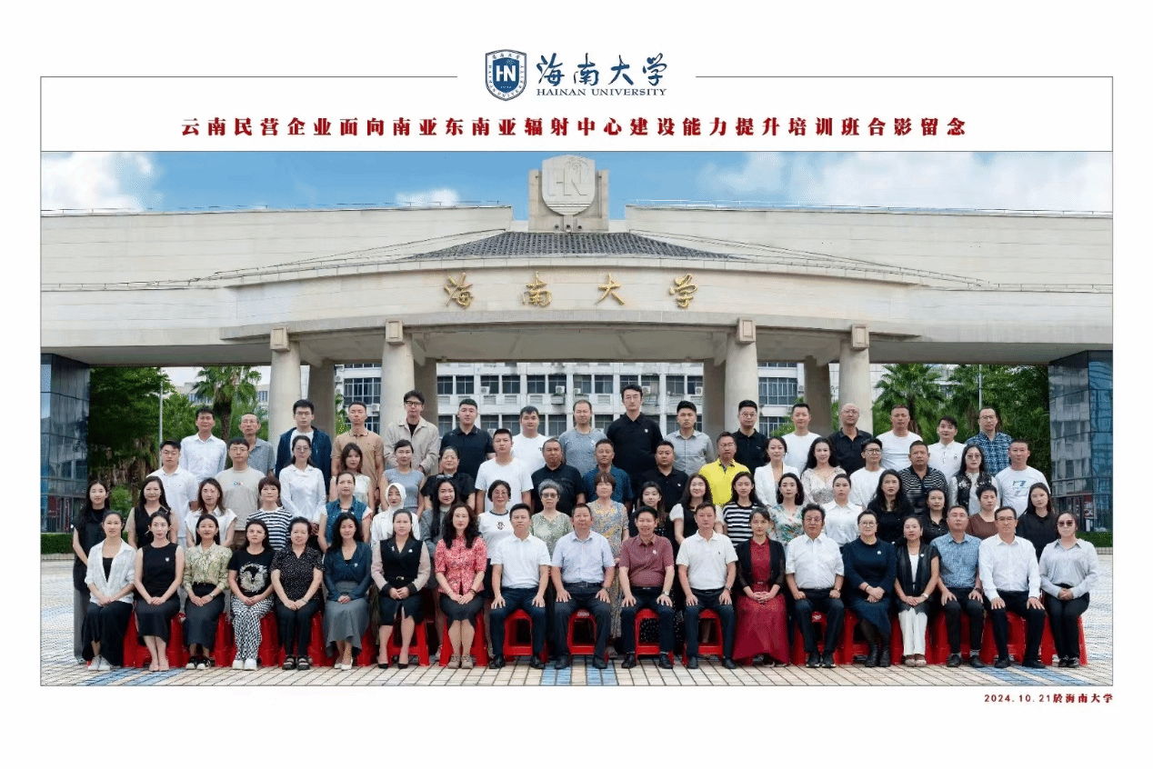 为深入贯彻落实党的二十大和二十届一中、二中、三中全会精神,助力云南民营企业精准把握战略定位,更好融入面向南亚东南亚辐射中心建设,推动企业高质量发展,2024年10月20日由云南省工商业联合会主办的云南民营企业面向南亚东南亚辐射中心建设能力提升培训班在海南大学正式开班。此次培训班吸引了全省各地多名民营企业代表参加。