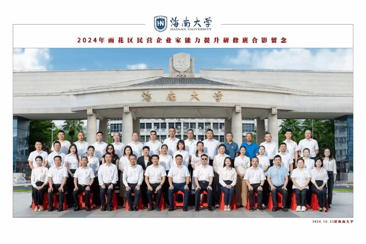 2024年10月22日至28日,2024年雨花区民营企业家能力提升研修班在海南大学成功举办。本次研修班吸引了来自雨花区的多名民营企业家、商会会长参与,旨在助力民营企业家拓宽视野、提升能力,推动区域民营经济高质量发展。