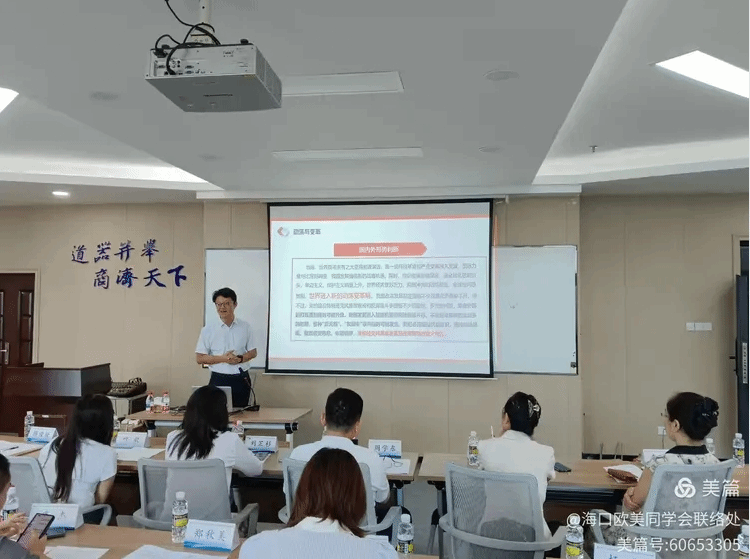 海口欧美同学会秘书长刘永宣作开班动员,指出:今年3月份以来,海口欧美同学会根据归国留学人员需求,聚焦海口重点产业发展,认真谋划、科学选题、精心组织,成功开展“大讲堂”三期活动。“大讲堂”第四期活动与全市归国留学人员专题培训班一同举办,是要丰富“大讲堂”活动形式,进一步促进归国留学人员学习交流、联谊合作。希望:参加培训的归国留学人员要深入学习贯彻习近平总书记“12˙17”重要讲话精神,深入学习贯彻习近平总书记致欧美同学会成立110周年重要贺信精神,不断增强思想政治素养,充分发扬留学报国光荣传统,勇于担当、积极作为,努力为建设海南自贸港、助力海口高质量发展贡献智慧力量。
