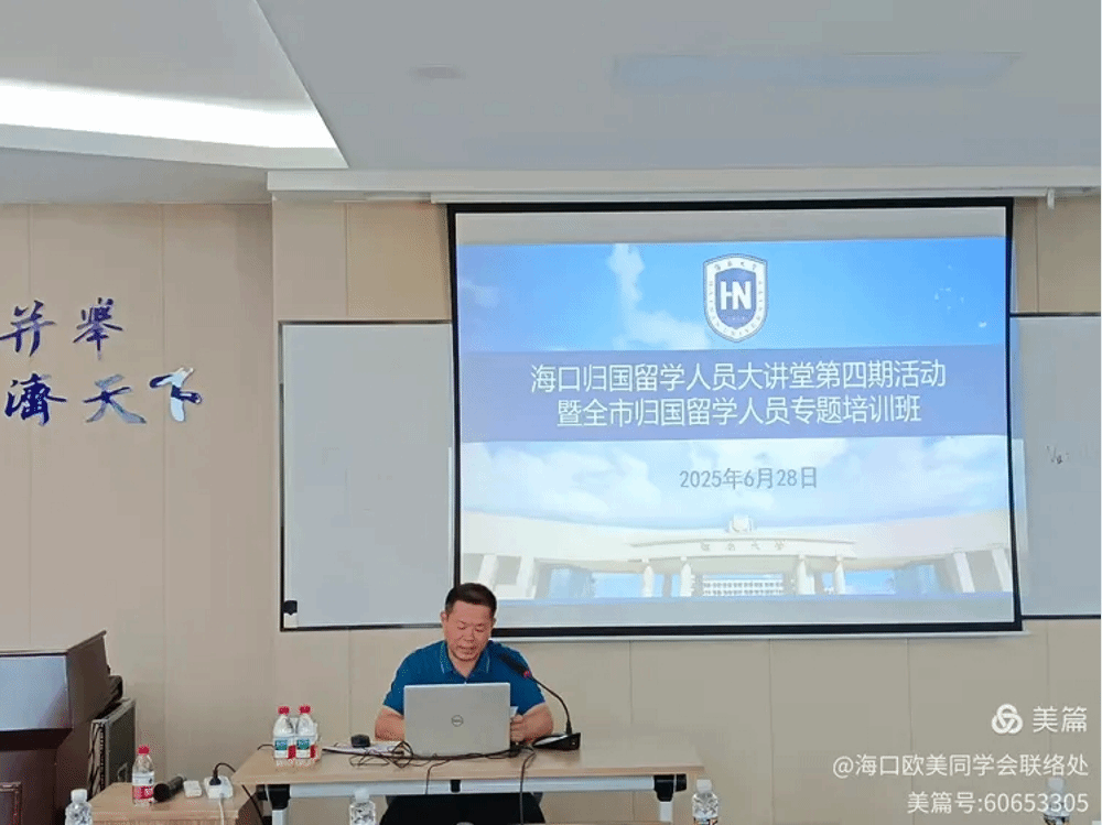 2025年6月28日,“我与海南自贸港有个约会——海口归国留学人员大讲堂”第四期活动暨全市归国留学人员“同心同向聚合力 留学报国自贸港”专题培训班,在海南大学成功举办。来自全市各个行业的30多名归国留学人员代表参加活动(培训)。